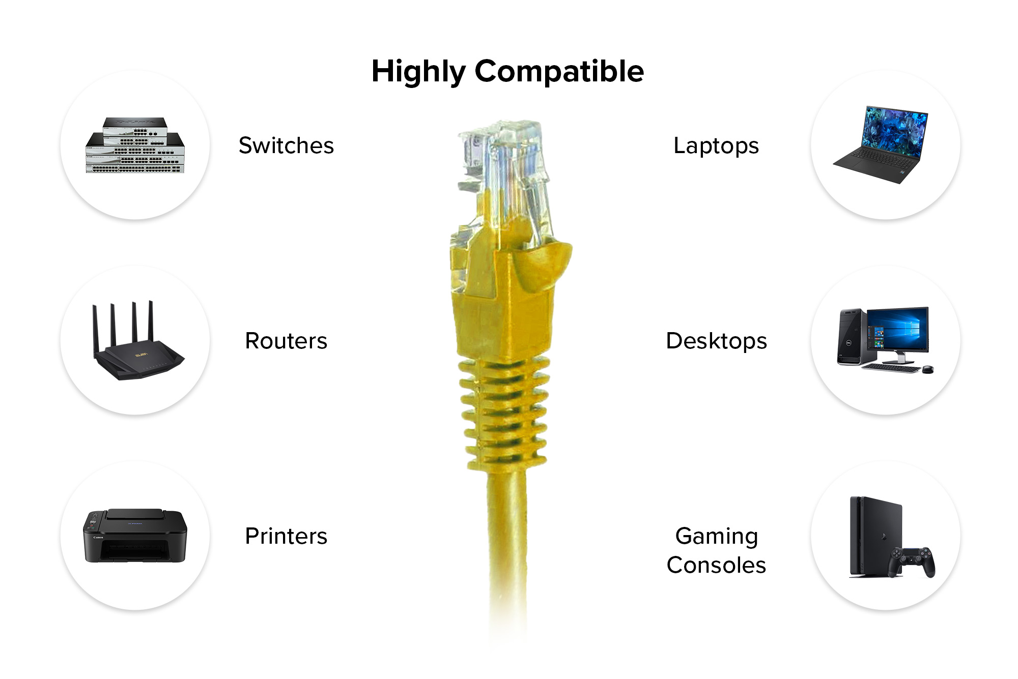 Connect your computer or gaming system to a cable modem, DSL, router, hub, switch, or patch panel with ease using this 1 FT Standard Boot Cat6 Ethernet Patch Cable in yellow. This cable allows you to network computers in your office or home, efficiently distribute data, voice, or video throughout your space, and is compatible with Power over Ethernet (PoE) systems.