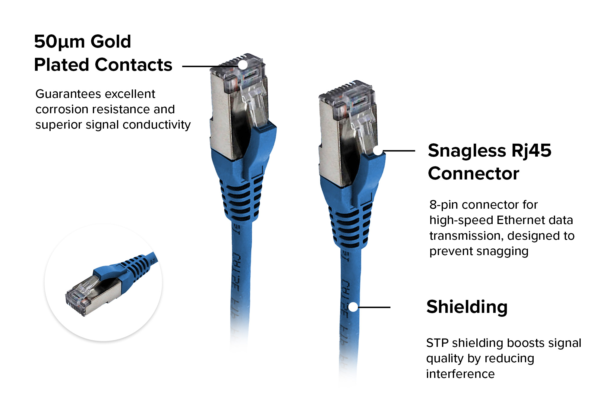 Introducing our shielded Cat6 patch cables, tailored network cables engineered to provide robust defense against EMI interference commonly encountered in proximity to power sources. To fully leverage the advantages of shielded patch cables, it's essential to shield your entire network infrastructure. These cables commonly link computers to various devices, including cable modems, routers, patch panels, hubs, and switches. Equipped with a molded boot for safeguarding the connector during installation, shielded twisted pair construction effectively mitigates crosstalk, ensuring seamless data transmission. With an ample bandwidth of 550 MHz, these cables efficiently distribute data with minimal return loss, guaranteeing superior network performance.
